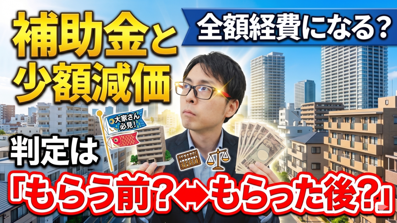 今回は、法人化。内窓設置によって補助金を受け取った場合、少額減価償却資産の特例は補助金控除前で判定するか、控除後で判定するのか?